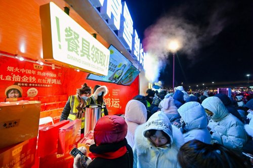 開鍋儀式的余溫未散,李華澤熱鹵展位前便排起了蜿蜒的長(zhǎng)隊(duì),成為嘉年華現(xiàn)場(chǎng)一道溫暖的風(fēng)景線。皚皚白雪覆蓋的園區(qū)內(nèi),一鍋鍋熱鹵持續(xù)沸騰,升騰的熱氣模糊了冰雪與人群的界限。工作人員身著統(tǒng)一服飾,有條不紊地進(jìn)行分裝、遞餐,用高效的服務(wù)將每份熱鹵及時(shí)送到游客手中。據(jù)了解,活動(dòng)現(xiàn)場(chǎng)累計(jì)送出萬(wàn)份熱鹵,每份都承載著品牌的誠(chéng)意,讓游客在感受冰雪樂(lè)趣的同時(shí),品嘗到地道的東北煙火味。